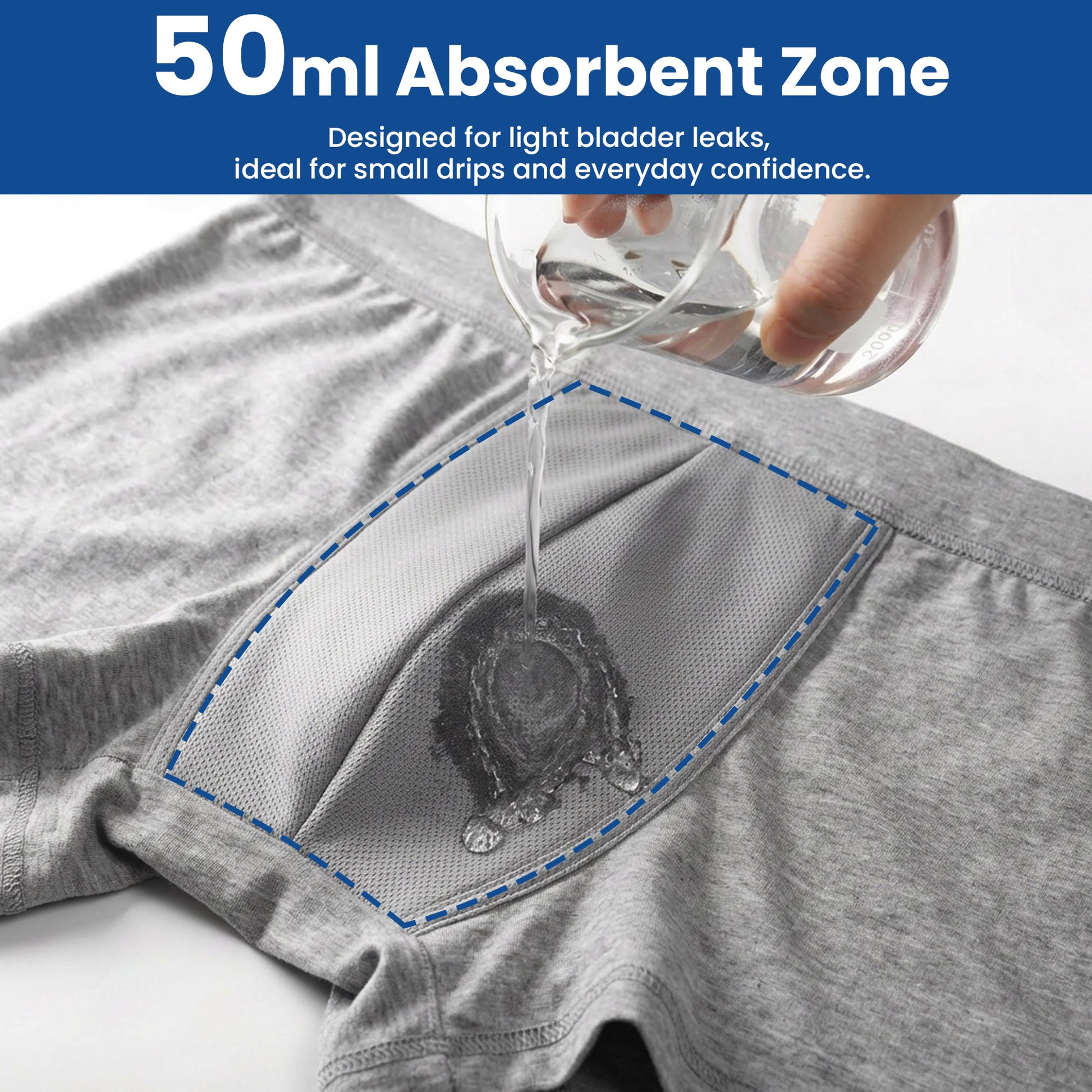 ✨ STAY DRY, 50ML ABSORBENCY: Targeted front-core absorption locks away leaks (equivalent to ¼ cup) – no dampness, no bulk. Perfect for light incontinence or post-surgery drips.